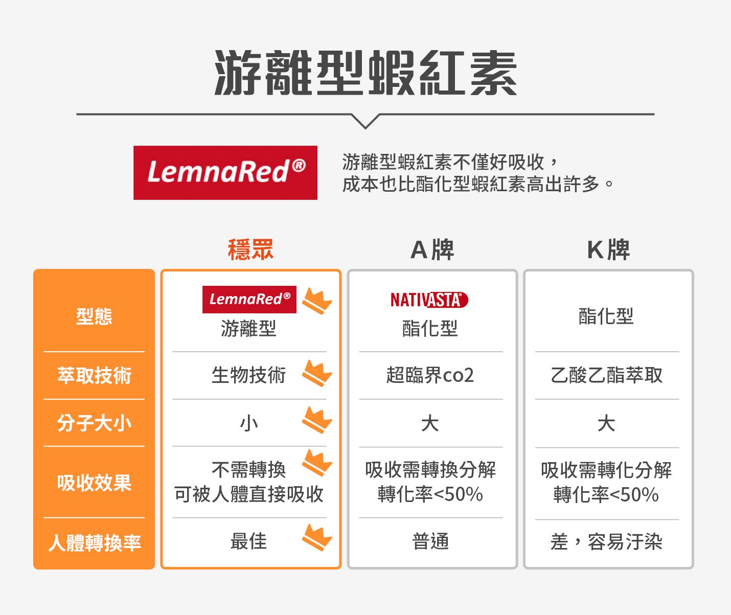 ✅游離型蝦紅素 | 使用LemnaRed®高純度生物精煉發酵技術