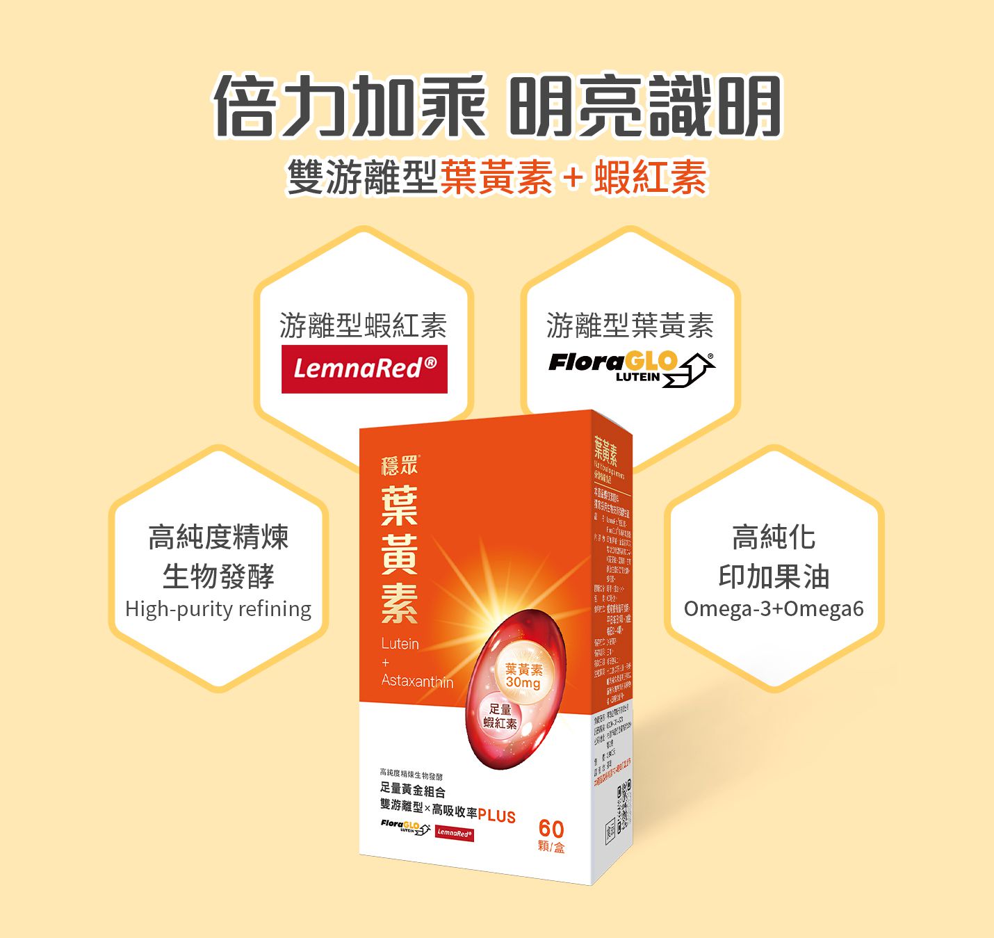🟡 【雙重組】首款雙游離葉黃素x蝦紅素2.0膠囊(30顆)+益生菌太空梭膠囊(60粒) 🎁